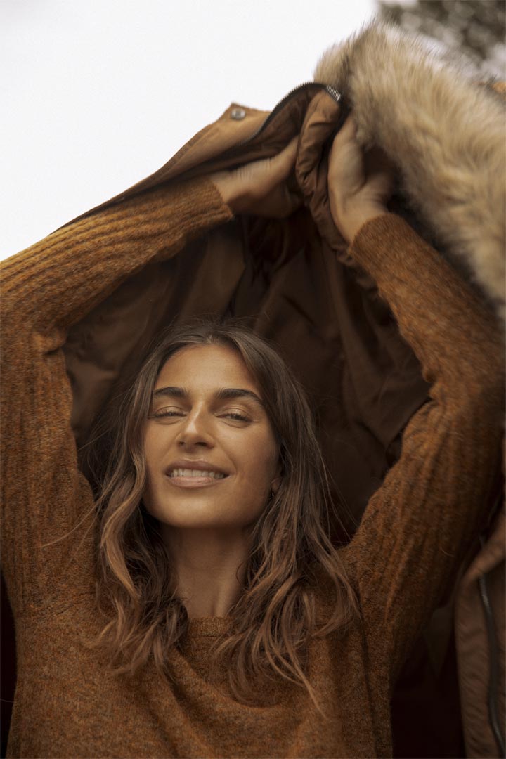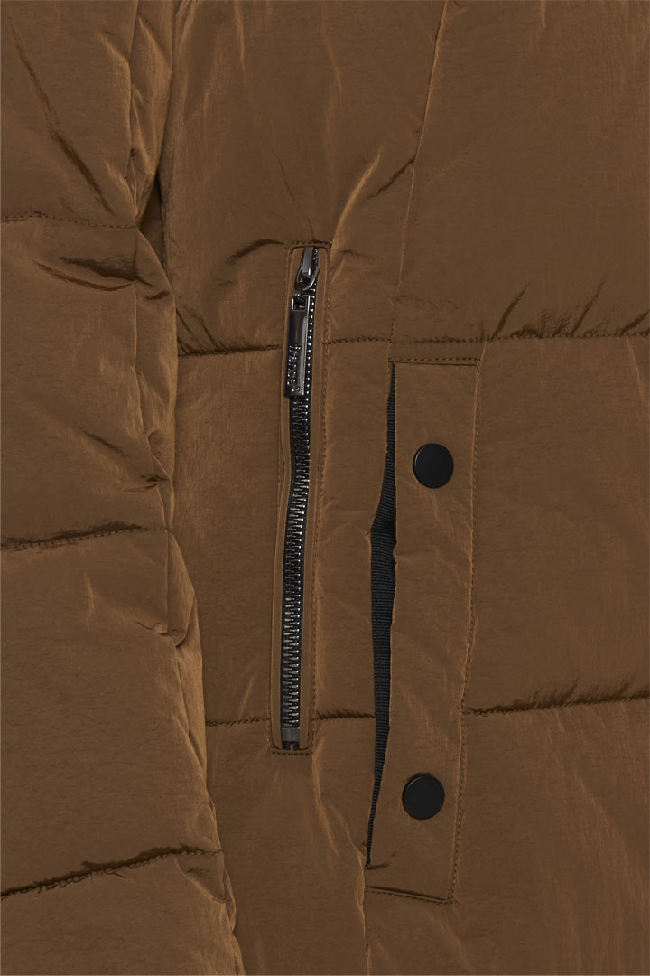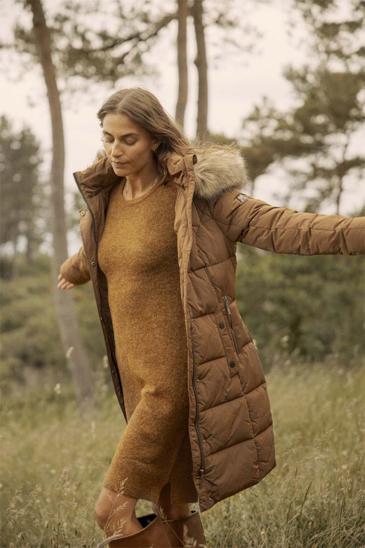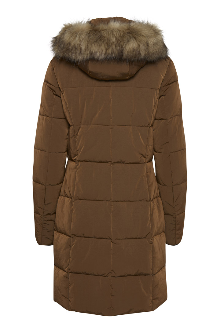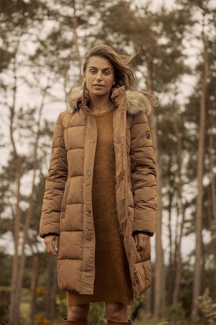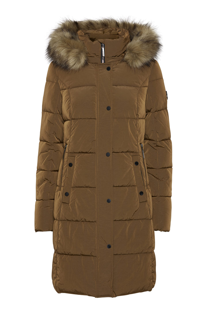 Γυναικείο μακρύ μπουφάν, με αποσπώμενη κουκούλα και γουνάκι.