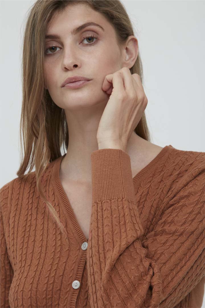Γυναικεία μακρυμάνικη ζακέτα με λαιμόκοψη τύπου V.