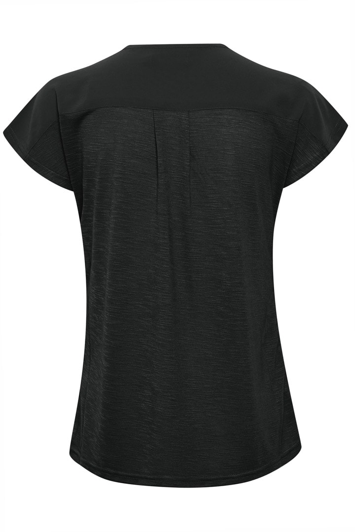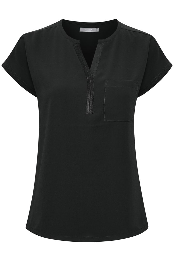Γυναικεία μπλούζα με κοντό μανίκι, λαιμόκοψη τύπου V με διακοσμητικό ρέλι και τσεπάκι
